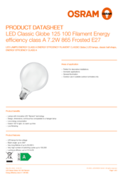 LEDClassicGlobe125100F ilamentEnergyefficienc yclassA7.2W865FrostedE 27en