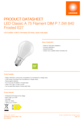 LEDClassicA75FilamentD IMP7.5W840FrostedE27en
